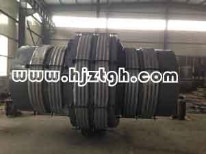 7.取出上法蘭定位銷,卸下組對裝置上法蘭5,再取出下法蘭定位銷,將力平衡波紋管補償器吊出組對裝置,完成力平衡波紋管補償器的上,下部分全部焊接,整個過程結束。